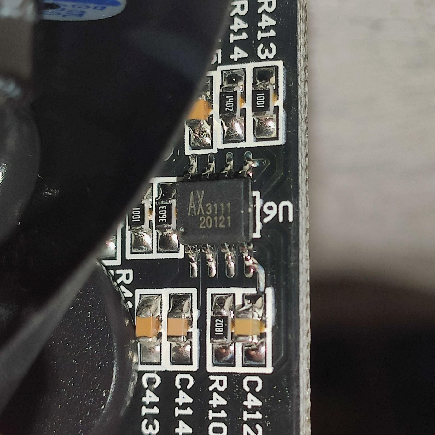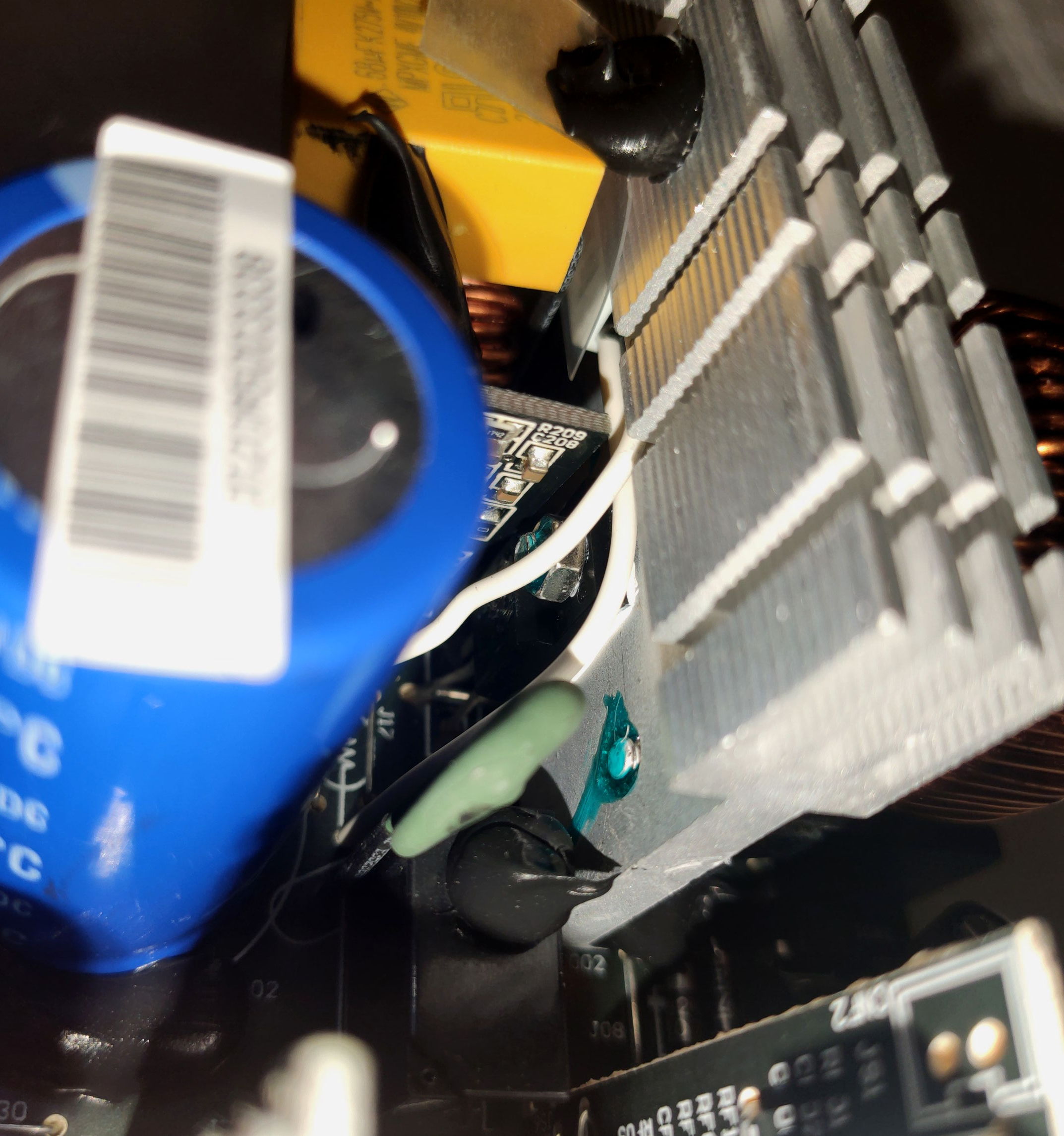 | Supervisor IC | Weltrend WT7527RA (OCP, UVP, OVP on 12V, 5V, 3.3V), OTP likely through aux protection pin from the fan controller |